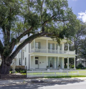 A historic mansion, built in 1857 with Greek Revival style architecture.